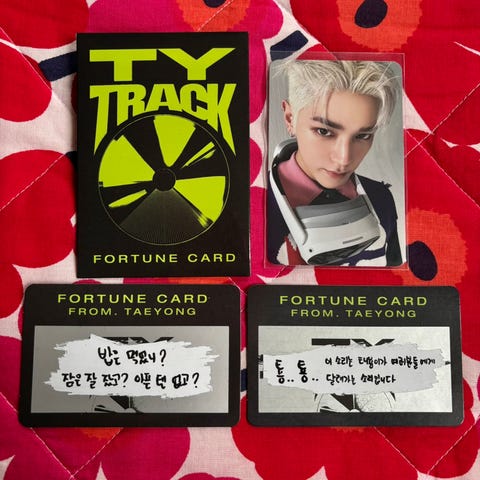 Myydään NCT Dreamin The Dream Show 3 konsertin Fortune Card setti, johon sisältyy Chenle kuvakortti, Chenle ja Haechan raaputuskortit ja kuori. Kuvakortti on uudenveroisessa kunnossa ja sitä on säilytetty muovitaskussa. Raaputuskortit on jo raaputettu niin kuin kuvasta näkee