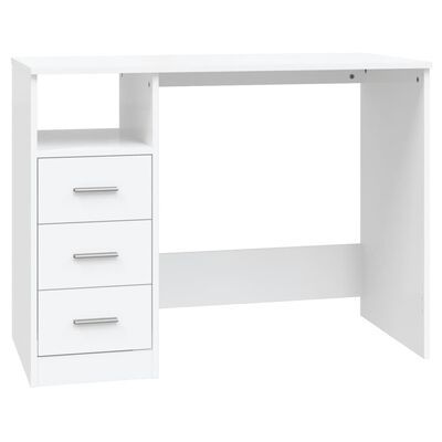 vidaXL Työpöytä laatikoilla korkeak. valk. 102x50x76 cm tekninen puu(sku823032