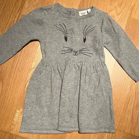 Name it beige neulemekko. Napit olkapäällä pukemista helpottamaan.