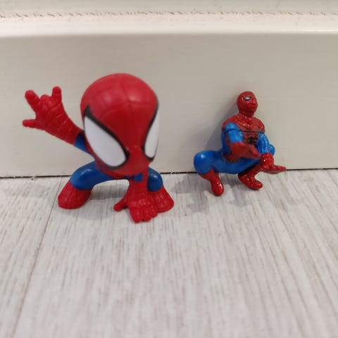 Spiderman Lastenlelut Spiderman-hahmot, jotka ovat punaisen ja sinisen värisiä ja valmistettu muovista. Settiin kuuluu kaksi erilaista hahmoa, jotka soveltuvat lasten leikkeihin.