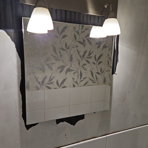 Putkirempan jämiä edelleen… eli mittavirheiden vuoksi kaikkien kylppärikalusteiden suunnitelmat menivät uusiksi ja sitä myötä alun perin hankitut peilivalaisimet eivät soveltuneetkaan muuttuneisiin suunnitelmiin.