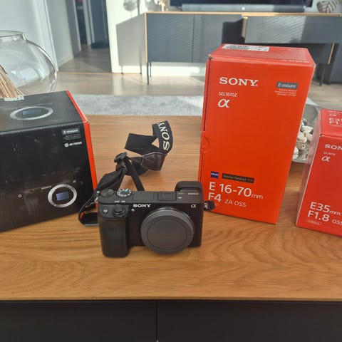 Sony Alpha A6400 -järjestelmäkamera + 16-50mm f/3.5-5.6 -objektiivi, täydellisessä kunnossa. Pakkaus sisältää kaikki lisävarusteet.