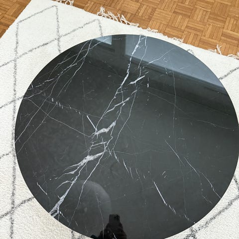 Pöytä on erinomaisessa kunnossa, ei säröjä tai lohkeamia.