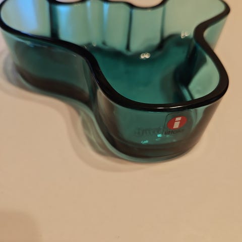 Iittala Aalto-maljakko on valmistettu kirkkaasta lasista. Maljakon muoto on aaltoileva ja orgaaninen, mikä tekee siitä tunnistettavan design-esineen. Pienempi 9 cm, isompi 13 cm. Molempien korkeus 3 cm. Pienempi 10 euroa,isompi 20 euroa. Voi ostaa myös erikseen. Nouto tai toimitus.
