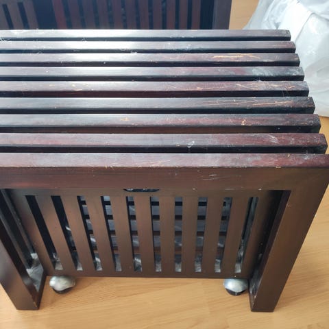 Kuvien mukainen taso 2 laatikolla, joissa renkaat. Tumna ruskea.
