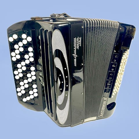 Tämä reiluääninen kaksiäänikerta on hyvässä kunnossa. Ei kulumia edes palkeissa, myös pehmeä ja muhkea paljesuoja on vielä hyväkuntoinen. Käytön jälkiä muutenkin hyvin vähän. Siisti peli. Viritys tarkistettu. Tästä hyvä treenikaveri nuorelle! Vanha soitin voidaan ottaa vaihdossa.