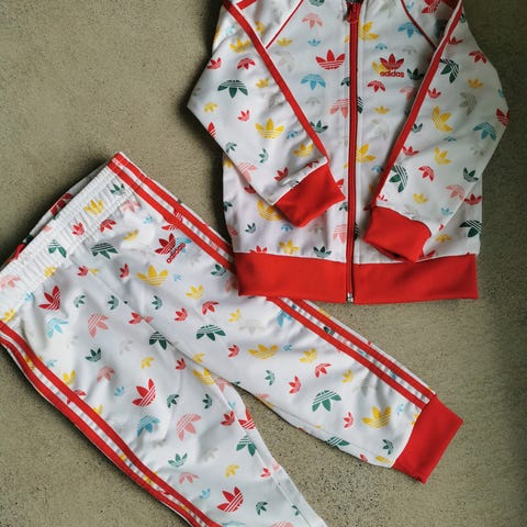 Adidas lasten verryttelypuku, koko 104. Siisti käytetty. Housut väriltään tummansiniset.