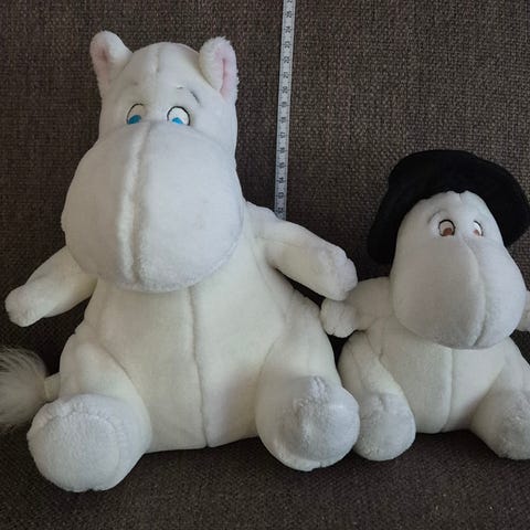 Muumipeikko korkeus 48cm ja muumipappa korkeus 32cm. Puhtaat ja siistit. Olleet koristeena lastenhuoneessa. Savuton ja lemmikitön talous. Myös nouto Östersundomista tai kulkeutuu myös Söderkullaan, Itäkeskukseen ja sovittaessa akselilla Östersundom-Itäkeskus-Itäväylä-Kruununhaka-Kallio.