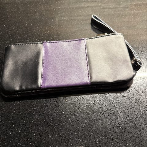 Ruskea lompakko vetoketjulla tai pieni iltalaukku. Koko 23x11cm.