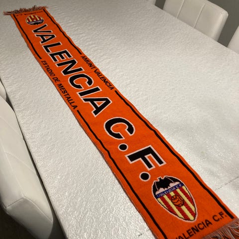 Myydään lastenkokoinen, mutta miksei myös aikuiselle sopiva Valencia CF jalkapallojoukkueen fanihuivi. Huivi saatu lahjaksi sukulaiselta joka kävi LaLiga ottelussa, eli aito tuote. Käyttämätön ja uudenveroinen.