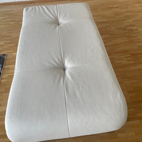 Nahkainen rahi, jossa on tumma ruskea väritys. materiaali on pehmeää nahkaa, ja rahi soveltuu istuimeksi tai jalkatueksi.