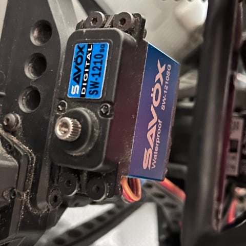 Savöxin sw-0231mg vesitiivis servi, josta joku ratas hajonnut. Vararattaita saatavilla rc-liikkeistä, jonka avulla servon saa toimintaan.