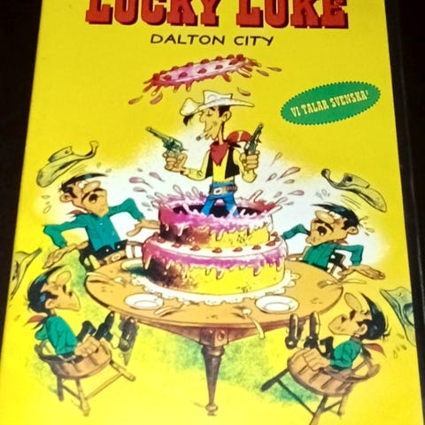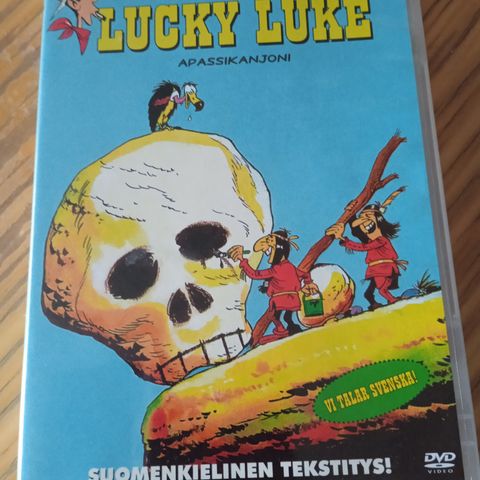 Lucky Luke Apassikanooni, jossa seikkaillaan villissä lännessä. Kuvan perusteella teos sisältää humoristisia ja seikkailullisia elementtejä, ja se on osa Lucky Luke -sarjaa.