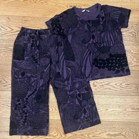 Marimekko sininen naisten Oloasu koko L. Asu koostuu pitkähihaisesta vetoketjullisesta yläosasta ja housuista. Materiaali on joustavaa ja sopii vapaa-ajan käyttöön. Puuvillaa 70% Vain nouto ja käteinen. Ei kulumia Missään.