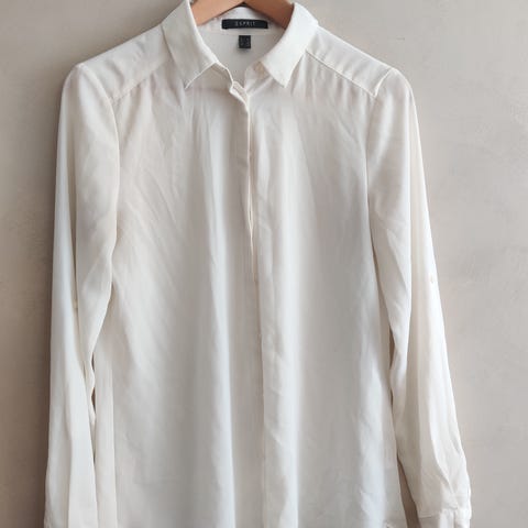 V-aukkoinen kauluspaita, ei nappeja ylös asti. Slim fit malli, joustavaa kangasta. Selässä pieni tahra, lähtee varmaan tahranpoistajalla.