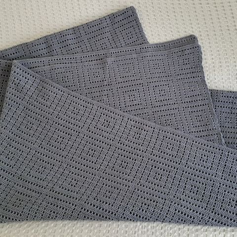 7-veljestä langasta käsin virkattu torkkupeitto. Kuviona isoäidinneliö. Väriläiskä kotiisi. Toista samanlaista ei ole.