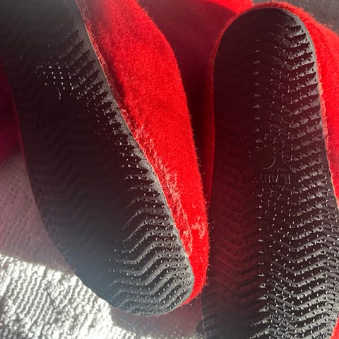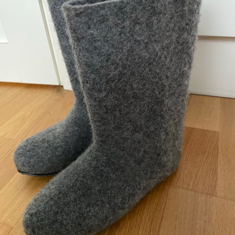 Tosi hyvät huopikkaat kokoa n.37.Kannassa kumi-pohjaus ja edessä tuplahuopa,joka paras liukueste.Näillä töpöttelee 100v turvallisesti postilaatikolle.