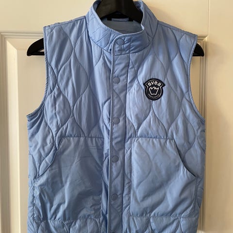 Geggamoja lasten liivi, koko 140, väri sininen. Unisex-malli, sopii sekä pojille että tytöille. Materiaali ja tarkemmat ominaisuudet kuvien perusteella eivät ole selkeästi määriteltävissä.