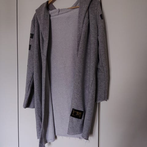 Musta, muotoon ommeltu collegetakki, neuletakki, pusakka. Ohutta puuvillaa.