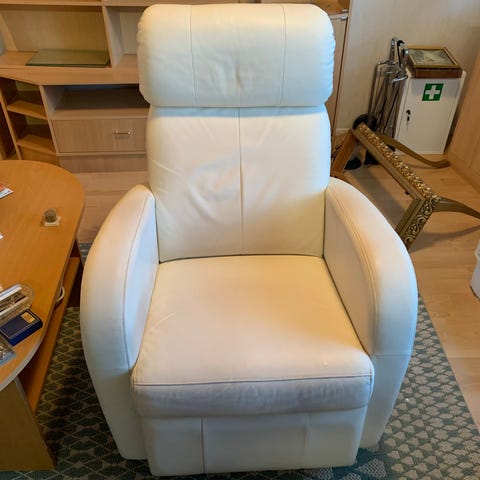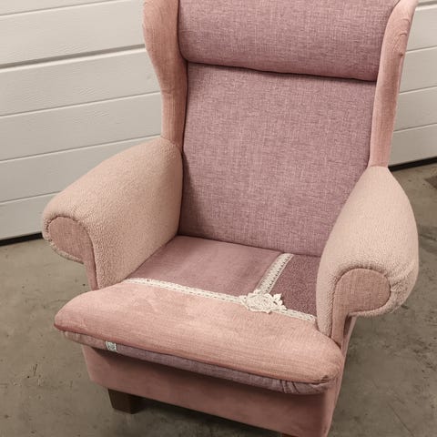 Kauniin ruskea väriltään, pinta elää, nupukkia. Tuolissa mekanismi, saa melkein makuuasentoon.