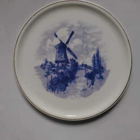 Pinnassa iän tuomaa krakeloitumista ja pieni valmistusajan epätasaisuus, mutta ei lohkeamia ja koristeet erinomaisesti säilyneet.
