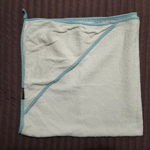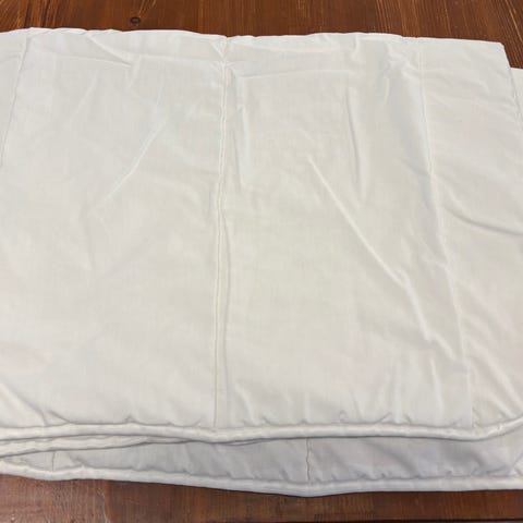 Valkoinen peite, jossa on kanttaus reunassa.
