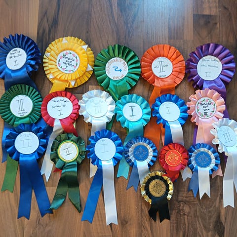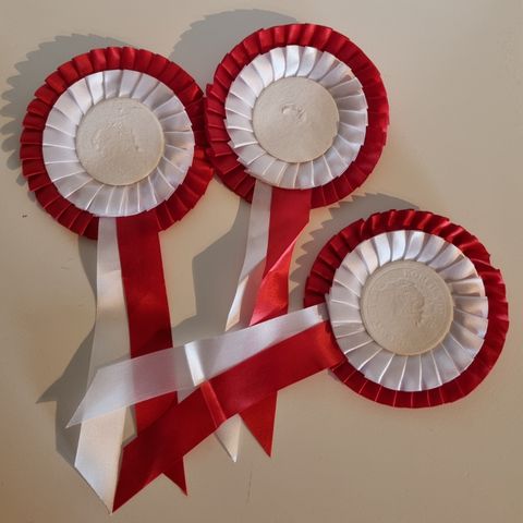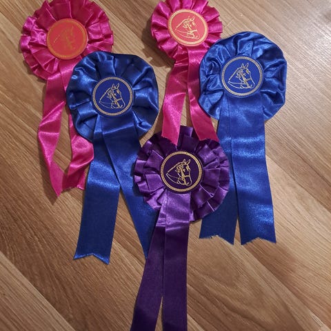 Sisältää ruusukkeet 3 parhaalla tekstein "Keppihevos (I, II, III) Esteratsastus". Ruusukkeiden värit ovat samat kuin oikeassa kilpailuissa.
