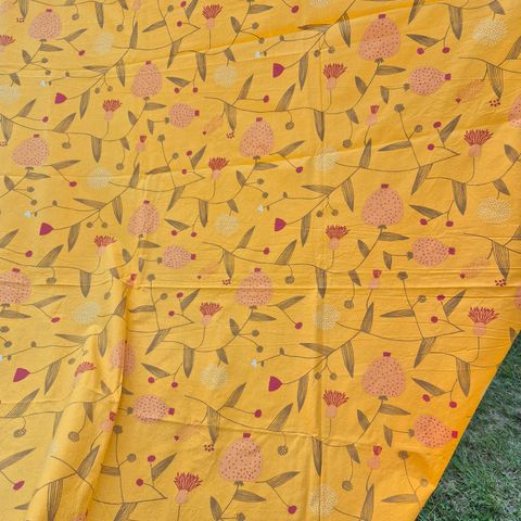 Marimekon vihreäsävyinen Poukama puuvillainen kangaspala. Koko 145 x 280 cm.