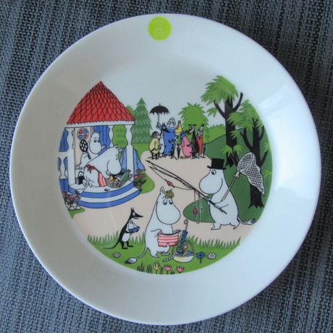Myynnissä kuvissa oleva Muumilautanen teemalla Uusi seikkailu: Muutto. Lautasesta on tarra paikoillaan eli käyttämätön lautanen kyseessä.