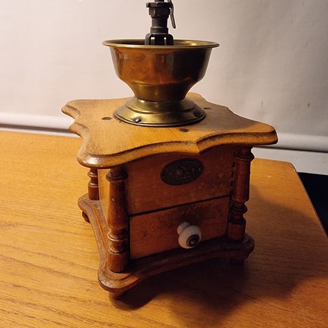 Hieman harvinaisempi, Espanjalaisvalmisteinen valurauta kahvimylly. Arviolta 1950 luvun tienoilta.