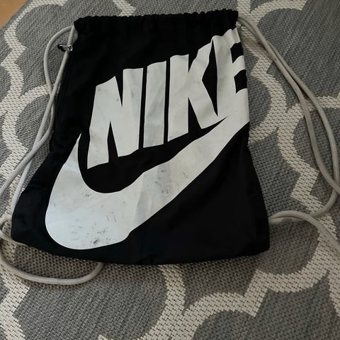 Myydään Nike Heritage Drawstring jumppapussi. Koko: n. 43x33 cm. Kestävä materiaali. Vetoketjullinen sivutasku. Ollut käytössä aika tavalla, joten valkoinen logo, sekä olkanyörit ovat likaiset, saattavat pesussa puhdistua. Nouto tai ostajalle toimituskulut.