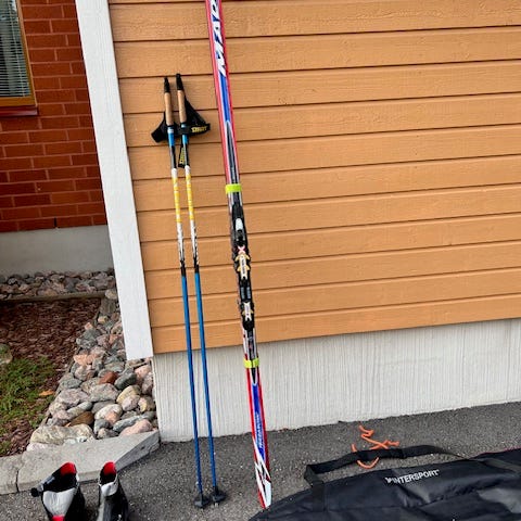 Ostan edullisesti perinteiset hiihtosukset NNN siteellä. Pituus 175 tai 180 cm. Tulee pelkästään kouluhiihtoihin, eli saa olla enemmän käytetyt, kunhan on ehjät. Myös sauvoille 125-130 cm on tarve. Noudan Lahden alueelta.