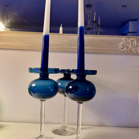 - Iittala Erkki Vesanto sininen kynttilänjalka n. 22 x 9 cm - 23 e