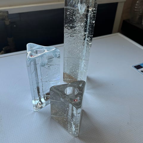 - Iittala, Pentti Sarpaneva puinen kynttilänjalka lasikoristeilla n. 16,5 x 6,5 cm - 18 e