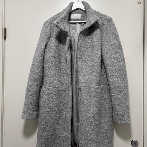 A-linjainen Vilan villakangastakki, koko 38. Suuri huppu.
