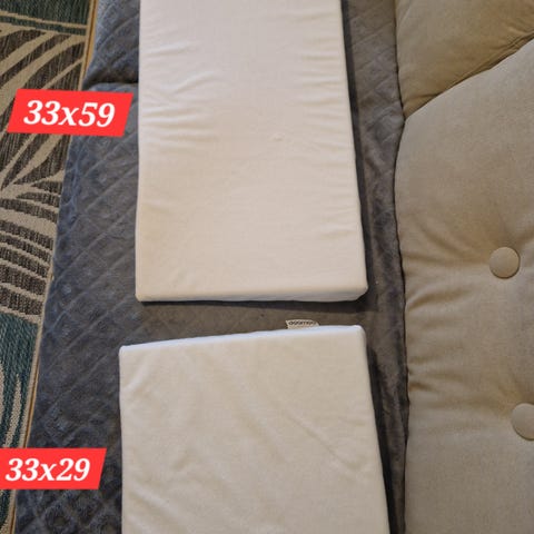 Koko 40 * 36 cm. Korkein kohta 7 cm. Ollut meillä ensisängyssä ja välillä vaunukopassakin. Lisäksi tämän avulla harjoiteltiin vatsallaan oloa. Siisti kunto, pestävä päällinen.