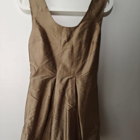 Myydään kuvanmukainen juhlamekko & hartiahuivi. Väri kulta. Sisävalossa otetuissa kuvissa näyttää vaaleammalta kuin oikeasti on.