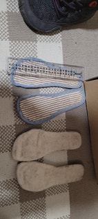 Pohjallisten mitat kuvissa. Joustonauhat vaihdettu jotta lapsen helpompi vetää kenkä itse jalkaan.