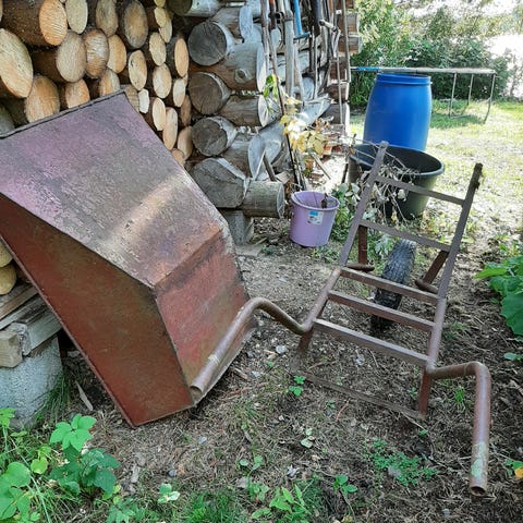 Siistit kuluneet retro sisustus-kottikärryt. Pituus 108cm ja leveys 38cm ja korkeus 44cm.