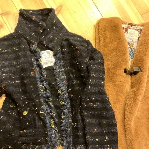Myydään DELORAS kaunis musta / valkoinen karva liivi/ turkkiliivi koko 134cm.