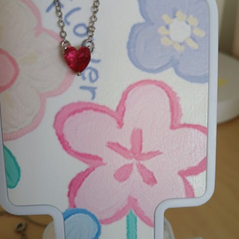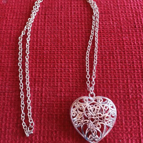 Sydänriipus Kaulakoru. Kaulakorun pituus on noin 45 cm. Korussa on sydämen muotoinen riipus ja lukko, jotka on suunniteltu naisille.