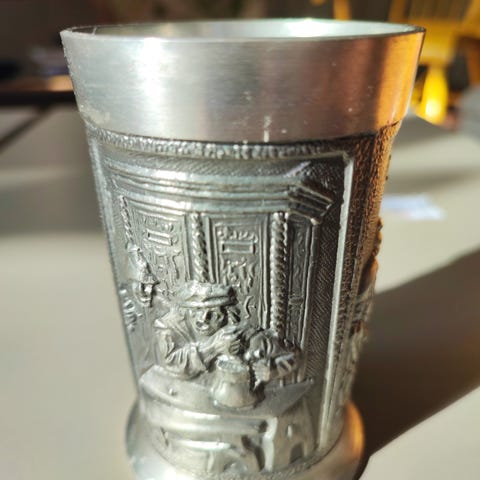 Koristeellinen tinakolikkomitalli, jossa on perinteisiä Thaimaan kuvioita ja kaiverruksia. Pyöreä, hopeanvärinen ja sopii koriste-esineeksi tai keräilyyn.