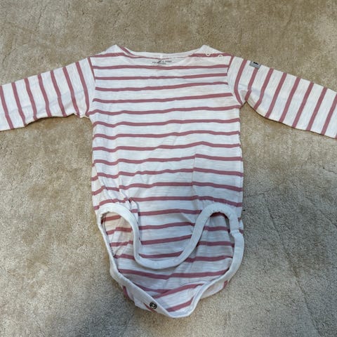 Polarn O. Pyret vaaleanpunainen vauvan body, koko 62, suunniteltu tytöille. Bodyssä on säädettävä pituus.