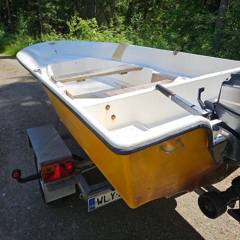 Mukana tulee 2 hevosvoiman nelitahtinen Honda-perämoottori. Moottori toimii moitteettomasti. Tänä syksynä on vaihdettu öljyt ja tappokytkin. Veneen runko on erinomaisessa kunnossa, koska venettä on käytetty harvoin. Mukana tulevat kaikki kuvissa näkyvät airot, ankkuri ja moottori.