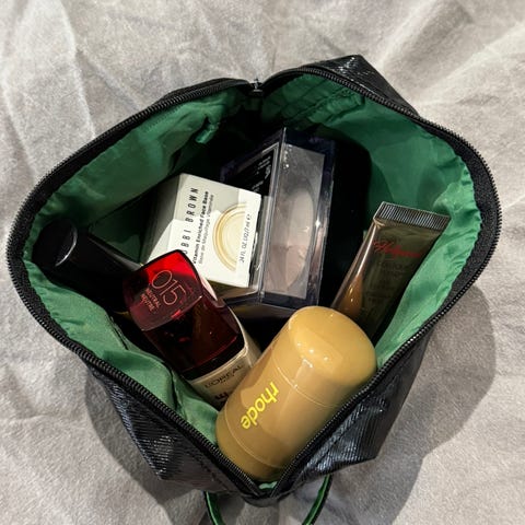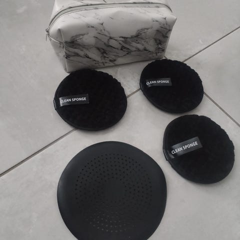Myynnissä Finlaysonin meikkipussi, jota voi käyttää joko pienenä, taitettuna tai suurempana.