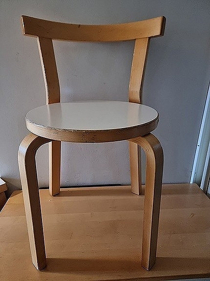 Artekin nojatuoli beige satulavyö. Tuolissa on jonkin verran käytönjälkiä. Tuoli on alkuperäisessä kunnossa talttapää ruuveilla.