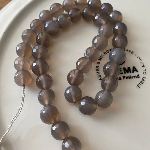 Akaattikivihelminauha, viistetty, pyöreä 12mm 21cm, käyttämättömät, uudet.