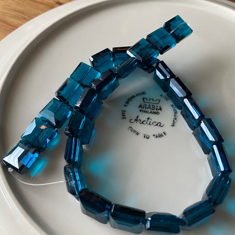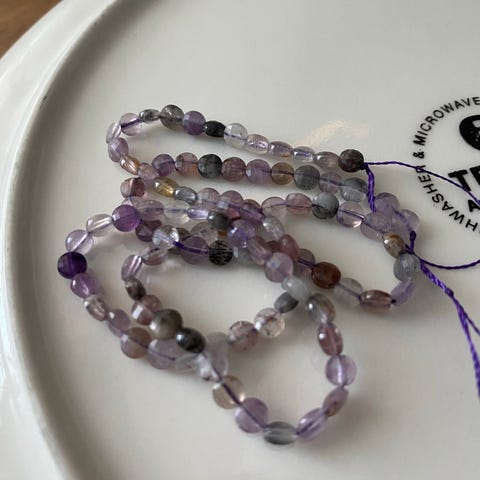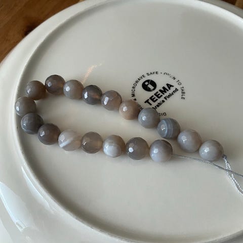 Akaattikivihelminauha, viistetty, pyöreä 10mm 38cm, uusi ja käyttämätön.
