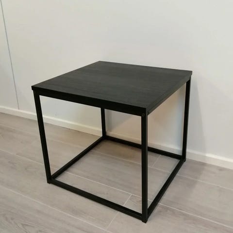 Pöytä on siistissä ja hyvässä kunnossa. Ainoana miinuksena on, että jo pöytää ostaessani siinä oli jonkinlainen valmistusvika, minkä vuoksi ruuveja ei saanut kunnolla paikoilleen. Niistä on nyt mennyt kierteet, ja ne jäävät hieman ulkoneviksi rungosta. Tämä ei ole kuitenkaan häirinnyt käyttöä.