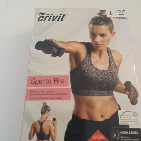 Kiva liikuntaan sopiva urheiluliivi, joka on napakkaa istuvaa materiaalia. Ei kaaritukia. Rintojen kohdalla on kivat tuuletusaukot rintojen välissä ja lähellä olkaimia. Reilut säädettävät olkaimet, hyvä istuvuus. Ei kaaritukia. Käyttämättömät mutta laput leikattu pois.